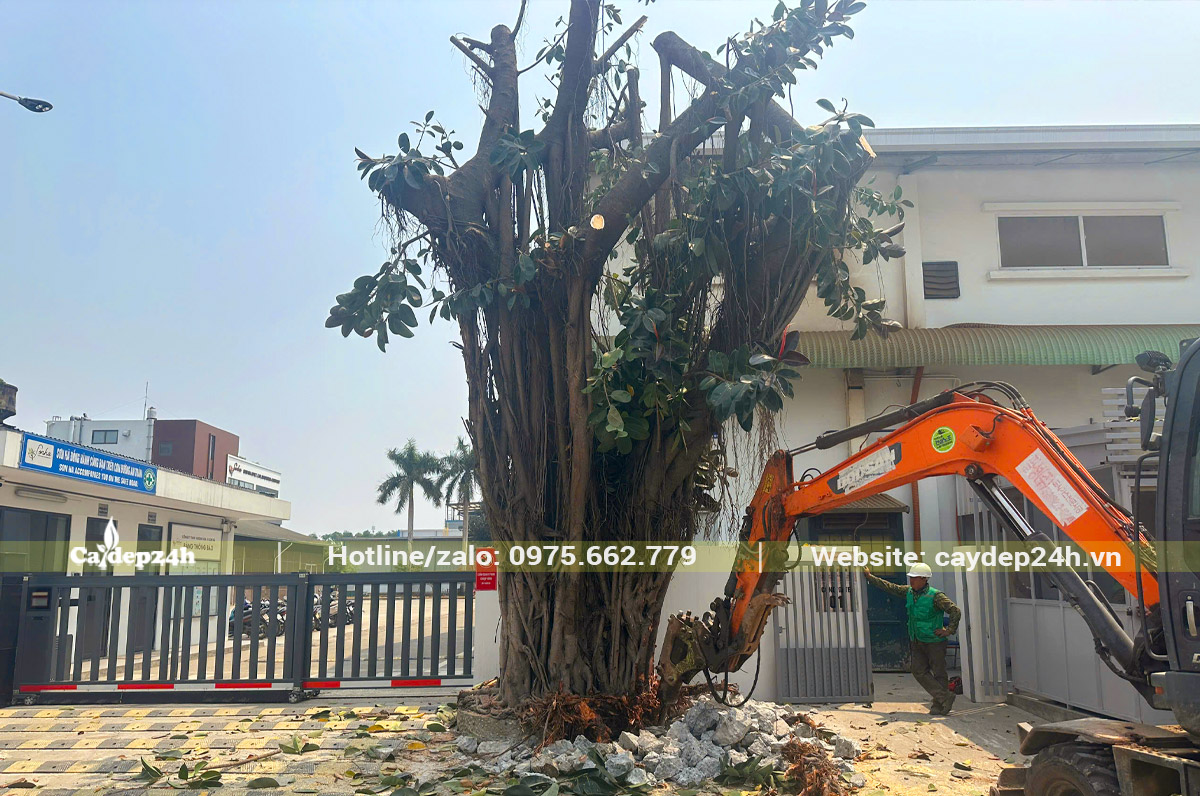 Bởi vì cây có kích thước lớn, để đảm bảo quá trình di dời diễn ra suôn sẻ, vị trí trồng mời đảm bảo cây sống, sinh trưởng và phát triển tốt, nên trước đó Caydep24h đã có cuộc khảo sát, đánh giá thực địa vô cùng cẩn thận. Từ đó, lên phương án thi công chi tiết đảm bảo hiệu quả tốt nhất, tiết kiệm chi phí, thời gian.