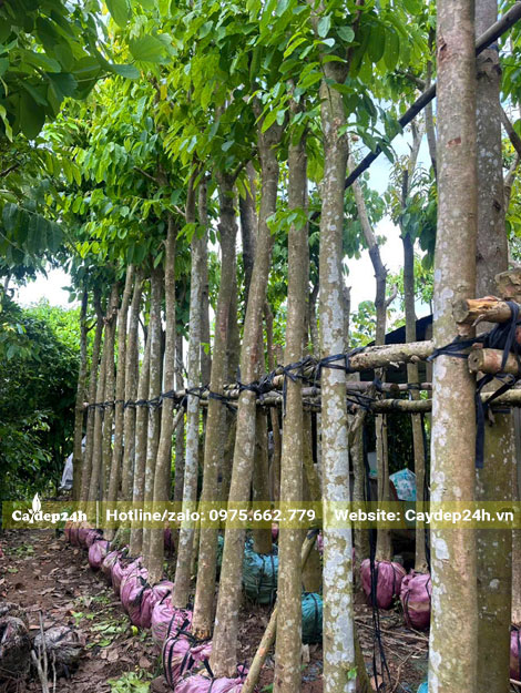Cây trồng do chính những người thợ lão luyện, có hơn 10 năm kinh nghiệm của Cây Đẹp chọn lọc kỹ lưỡng từ các vùng chuyên canh. Cây thẳng đẹp, tán phân bố đều, sức sống tốt, tuyệt đối không có dấu hiệu nhiễm sâu bệnh. Cây được dâm ủ kỹ thuật cao tại vườn từ 3 – 6 tháng, thậm chí 12 tháng, bộ rễ đã phục hồi tổn thương, ra nhiều rễ tơ, đạt chuẩn an toàn 100% để xuất vườn giao cho khách.